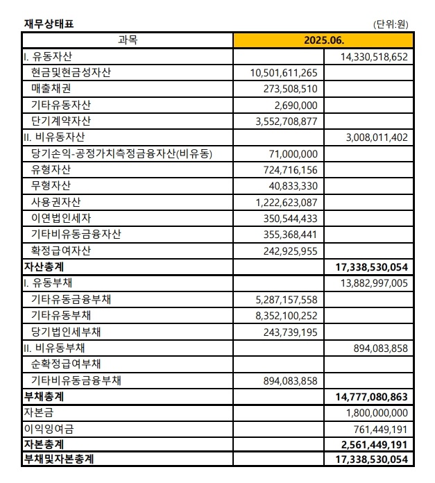 코가스서비스얼라이언스(주) 2025년 상반기 결산 재무상태표