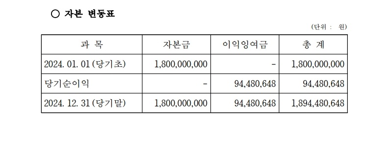 코가스서비스얼라이언스(주) 2024년 결산 자본변동표