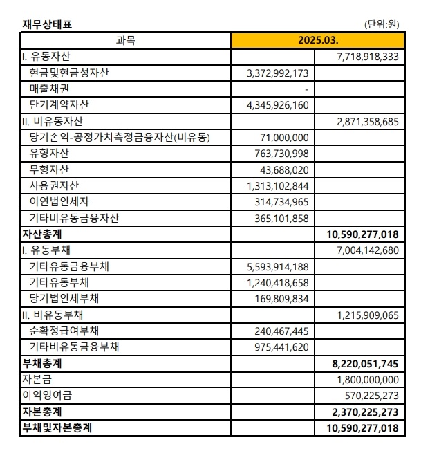 코가스서비스얼라이언스(주) 2025년 1분기 결산 재무상태표