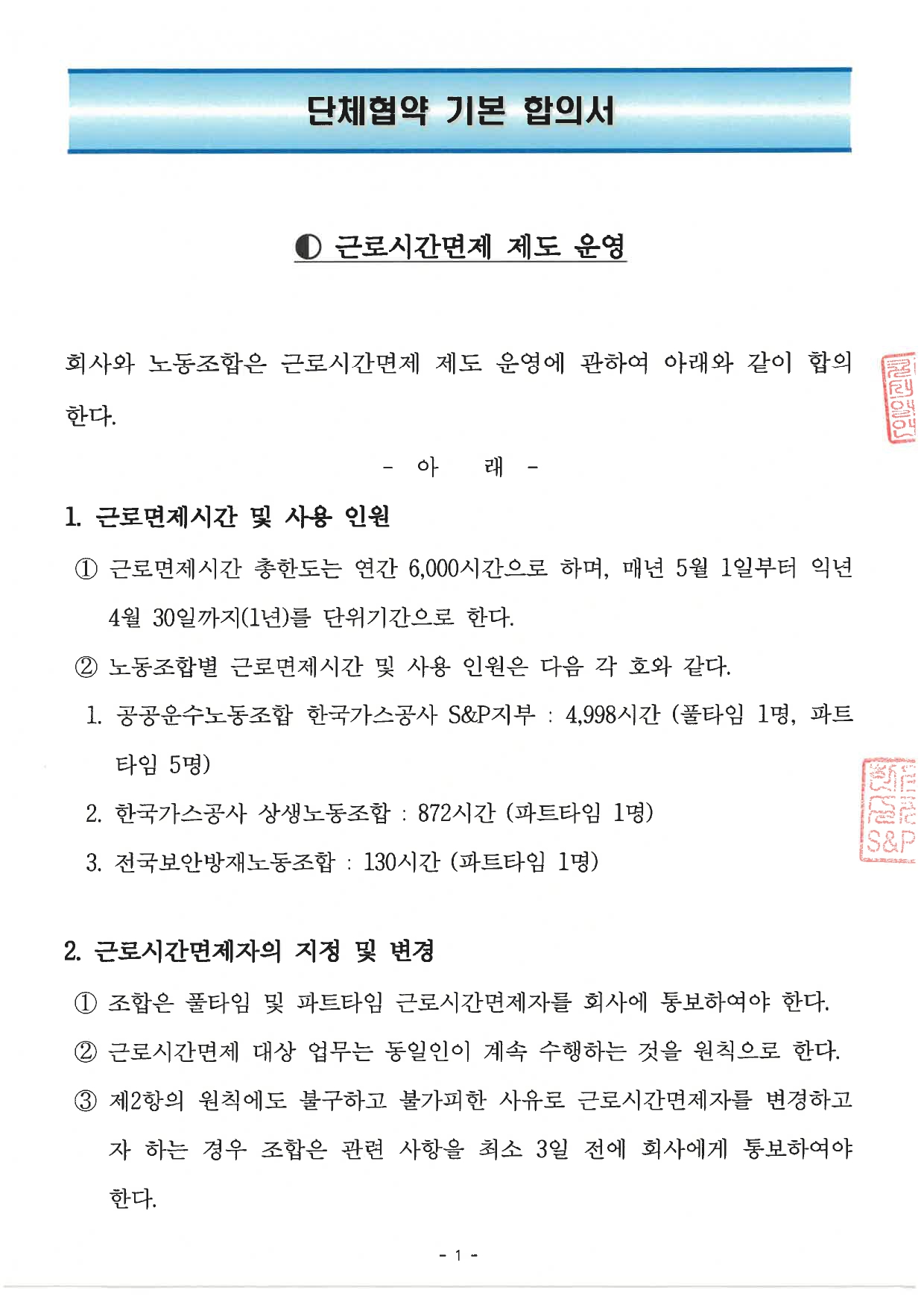 근로시간면제 제도 운영 합의안