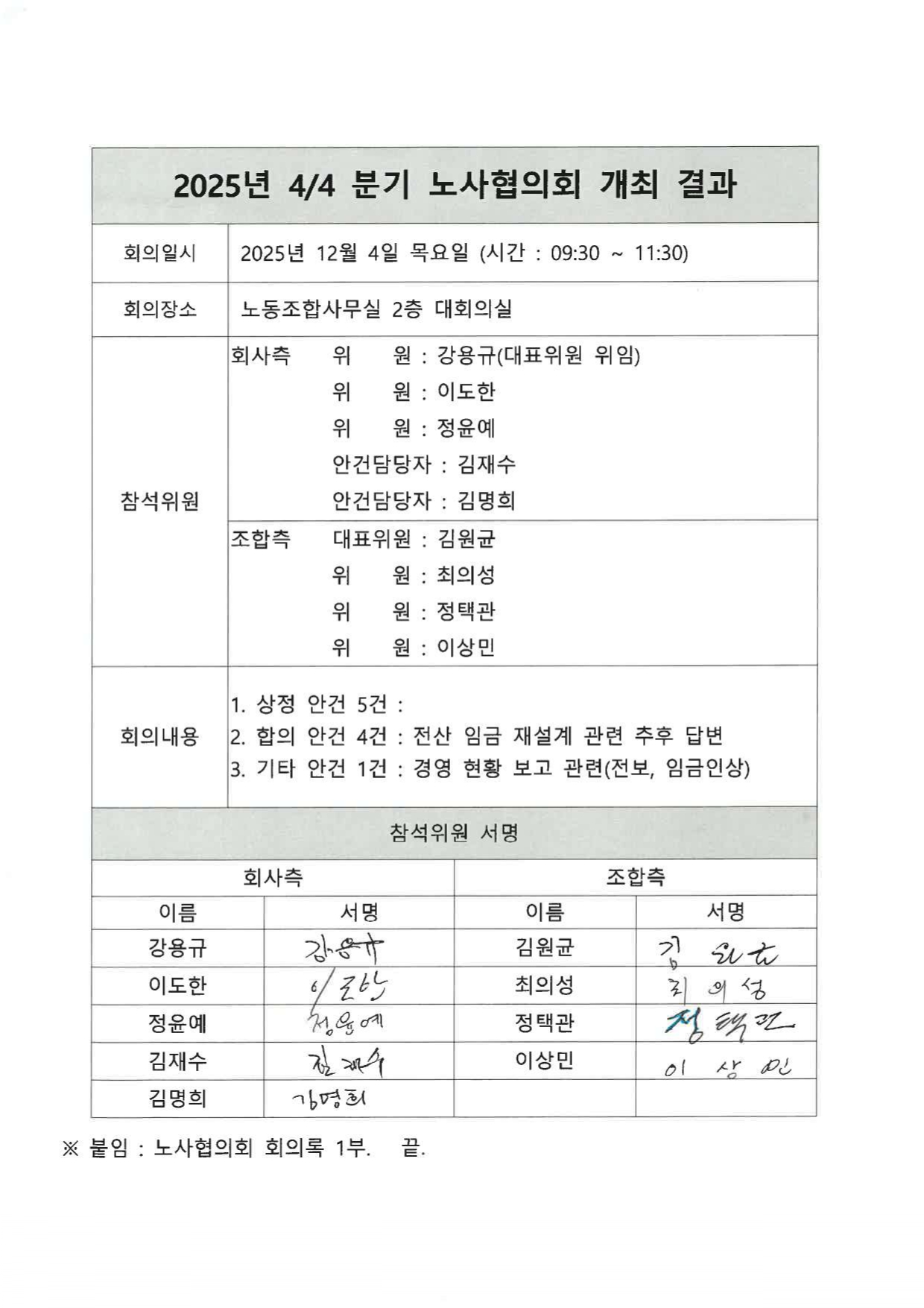2025년 4/4분기 노사협의회 결과